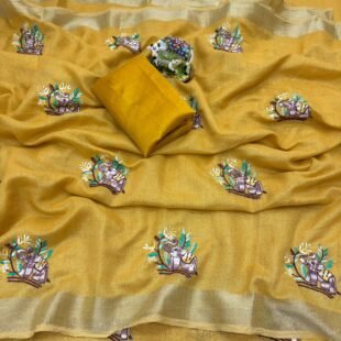 Designer Cotton Linen Printed Saree