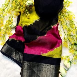 🔥 Beautiful Heavy Linen Blooming Fabric Saree 🤩