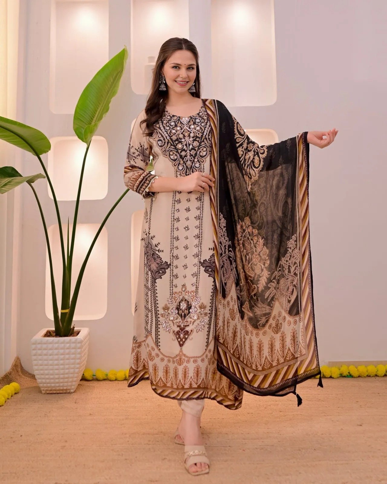 Step into timeless elegance with our latest Pakistani-style 3-Piece Suit Set, designed to blend rich tradition with modern fashion. Perfect for festive occasions and special celebrations.