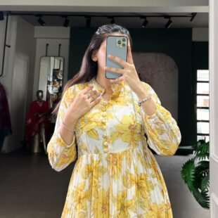 ♥️Ethnic Collection 🌷 Yellow Floral grace meets subtle foil sparkle in this beautifully designed