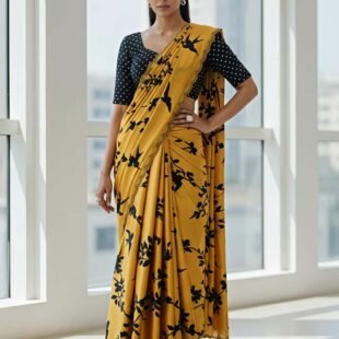 ♥️ Heavy Carbon Crepe Fabric Saree-Golden ♥️